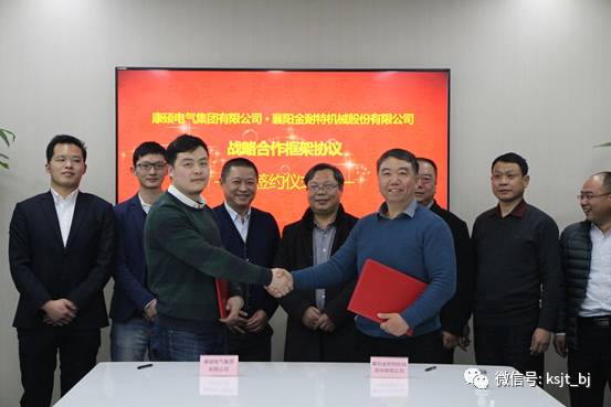2017年1月21日,康碩電氣集團(tuán)有限公司與襄陽(yáng)金耐特股份有限公司戰(zhàn)略合作框架儀式簽約儀式在京舉行?荡T集團(tuán)總裁劉斌、副總裁段戈揚(yáng)、襄陽(yáng)市谷城縣副縣長(zhǎng)陳光明、襄陽(yáng)金耐特機(jī)械股份有限公司董事長(zhǎng)帥德國(guó)等相關(guān)領(lǐng)導(dǎo)共同出席會(huì)議。